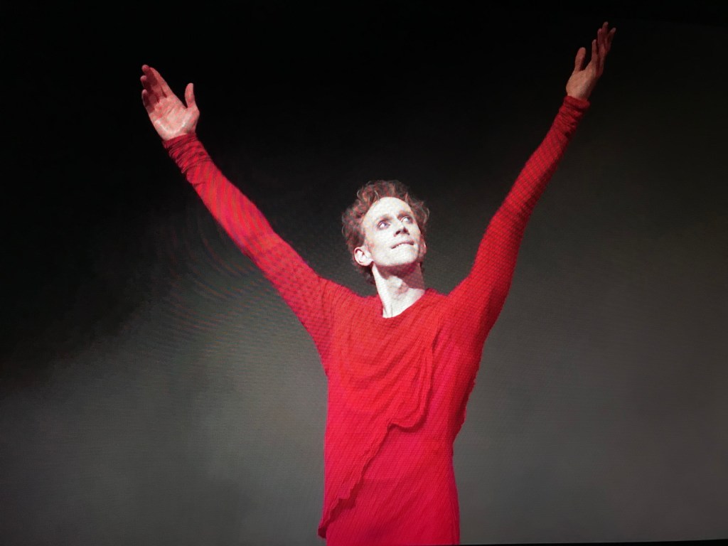 Two scenes stood out here in particular. The first one when both poets reach the Garden of Eden (Canto XXVII) and Virgil has to leave Dante, as Beatrice is there to guide him further on; and when the two pilgrims say goodbye to each other, the farewell truly breaks one’s heart, Edward Watson and Gary Avis presented the painful moment so well. The second scene with Dante, who is, finally, able to see Beatrice, will make the audience recall it again and again, as Edward Watson and Sarah Lamb, while on their journey high up, to the Paradiso, made the pas de deux unforgettable. They both looked as if not only did their bodies dance but also their souls in this love scene. “Now be celestial!” Wayne McGregor commanded like a god during rehearsals, and such they truly were. That gorgeous is the choreography and its fulfillment in this scene. Tacita Dean thought of a traditional red gown for Dante and of a gauzy, spring-like dress for Beatrice, emphasising will, desire, and love of Dante’s, a newcomer to the Garden of Eden, and purity, grace, and repose of his beloved. The role of Dante was extremely difficult to dance and act, it required so many skills from the dancer: stamina, knowledge, emotional intelligence, and incredible technique, given how complicated McGregor’s dance vocabulary and stylistic are. Clearly, it’s hard to cast a better artist than Edward Watson for this role, which he danced with such vividness and brilliance. It’s a pity that it was his swan song because of his retirement, and his presence on stage will be missed greatly in the future.